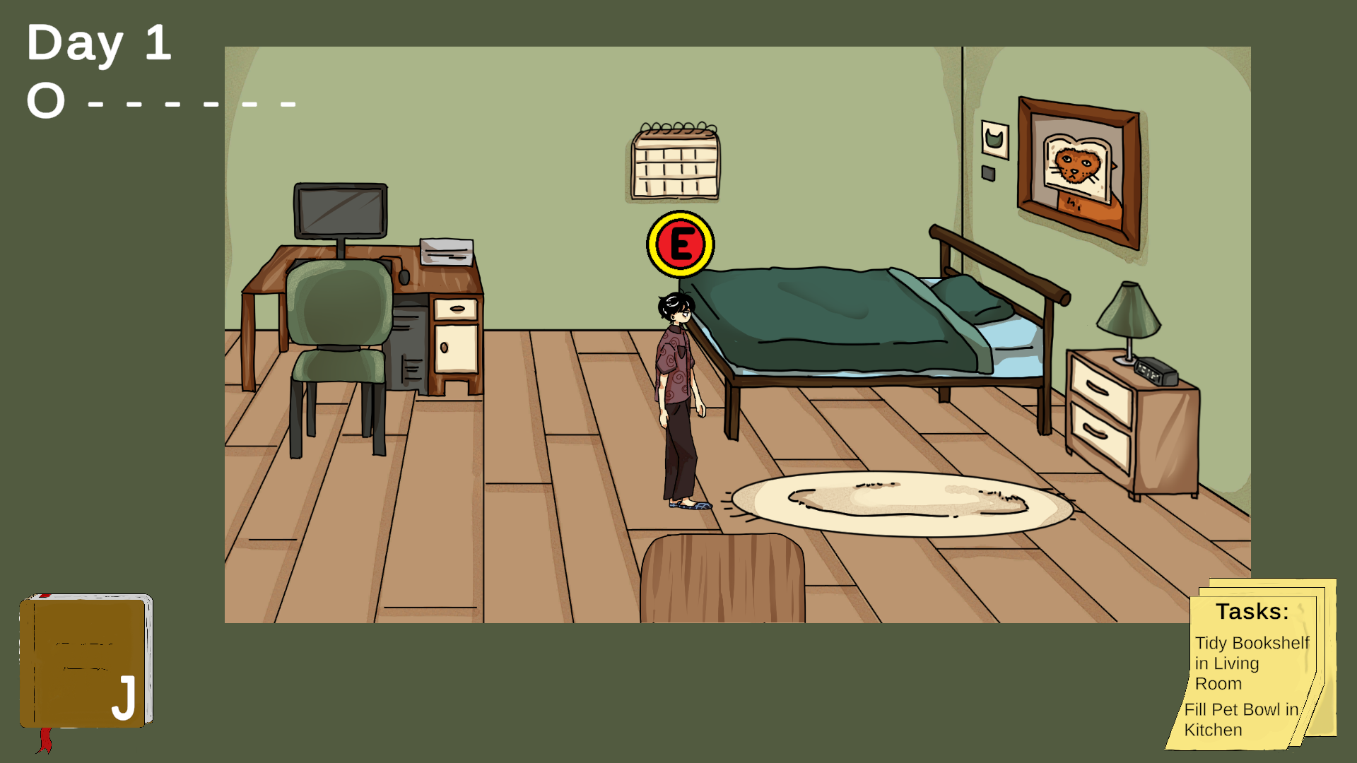 - Interact: E/Space/Left Mouse